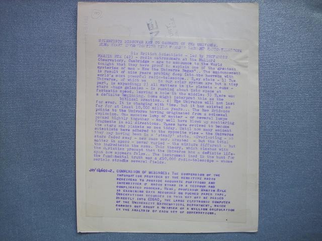 Professor Martin Ryle (with reference to EDSAC) c1961