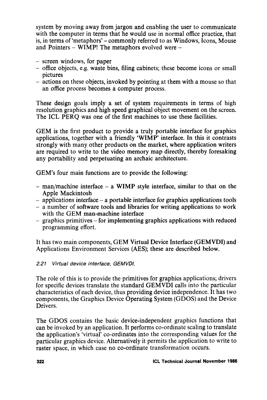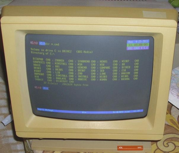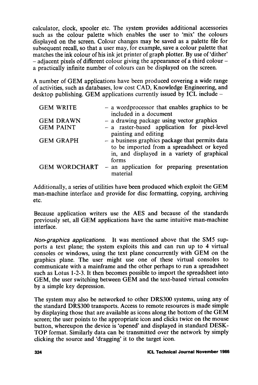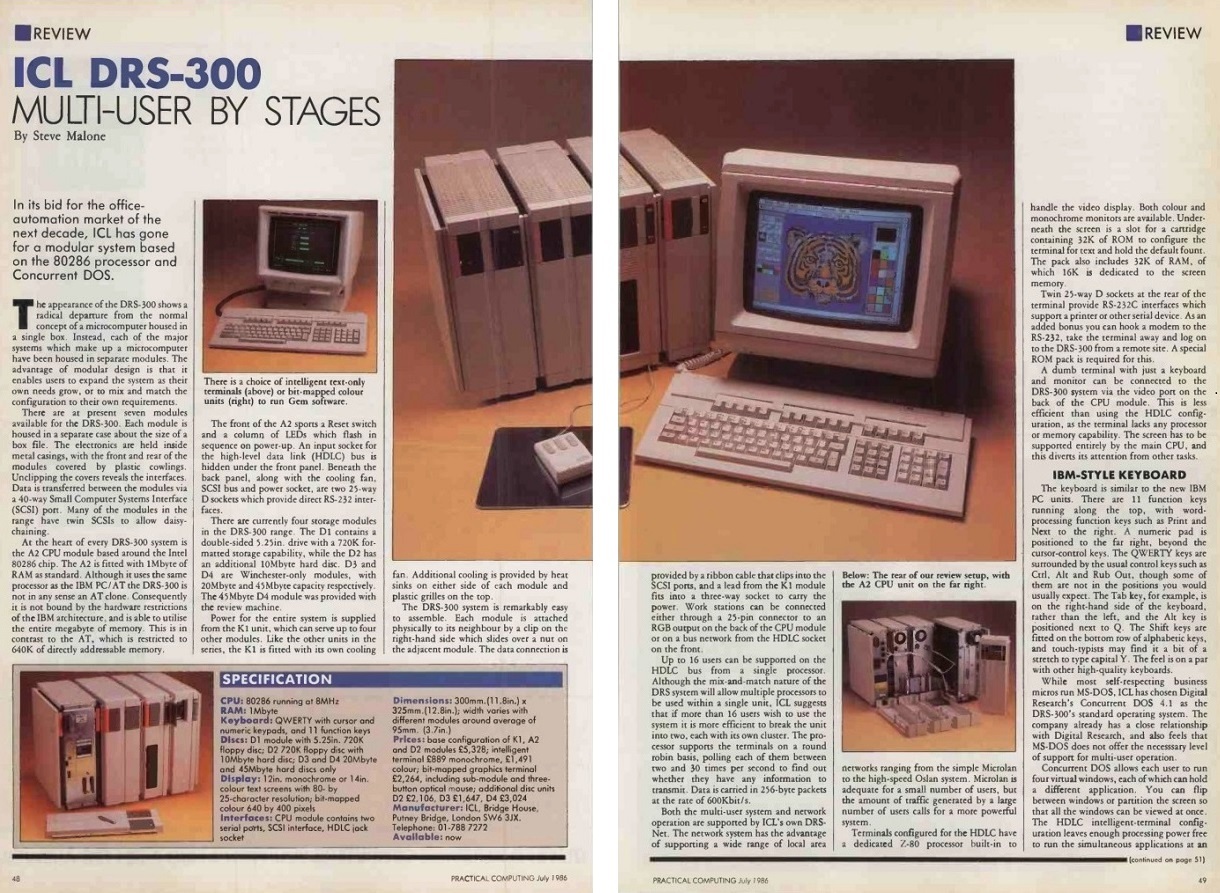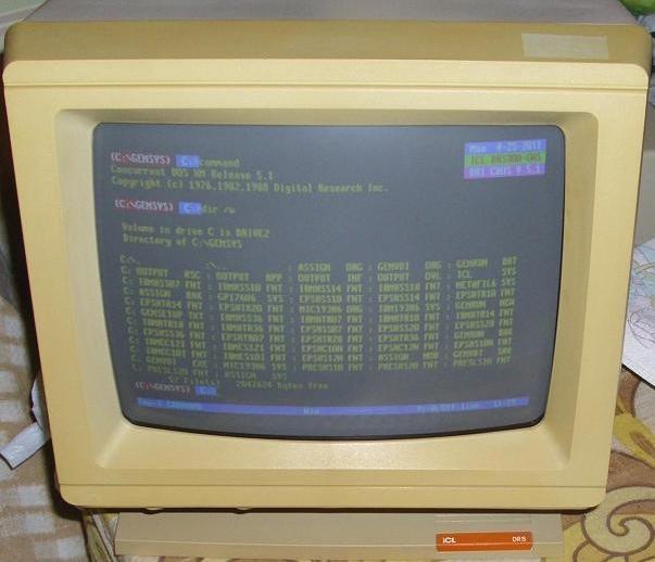 The software running includes ICL's version of DRI Concurrent DOS 5.1, ICL's version of the Windowing system that comes with this and ICL's version of DRI's Windowing software GEM.