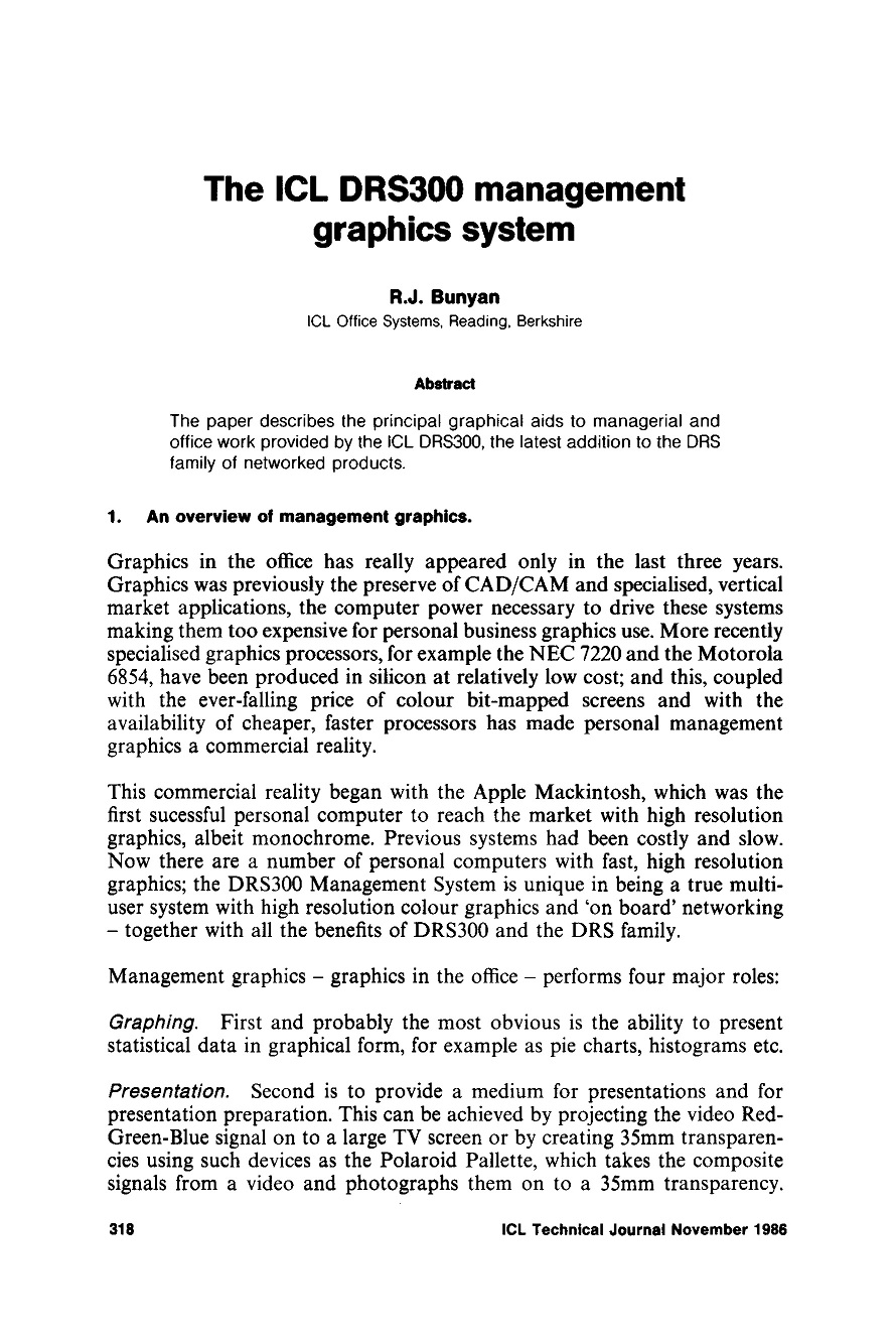 The article by R.J. Bunyan was published in the November 1986 edition of the ICL Technical Journal.