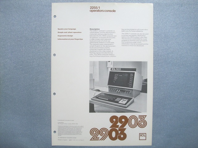 ICL 2903 Operators Console 2255/1 c1974
